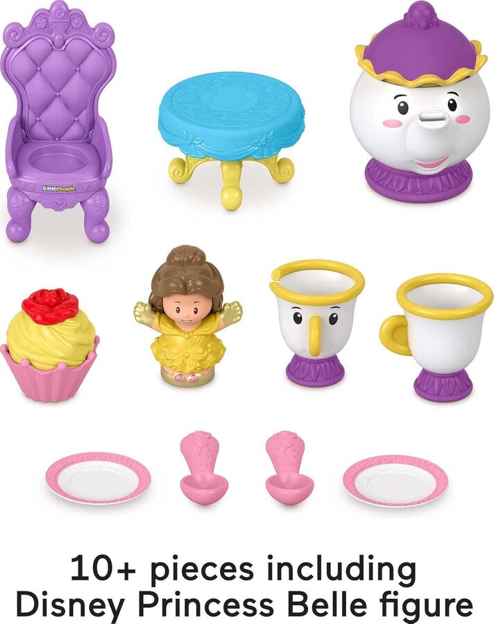 - 10+ play pieces, including Disney Princess Belle figure, Mrs. Potts teapot and Chip the teacup