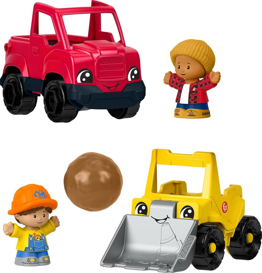 - 5-piece Little People vehicle & figure set for toddler-friendly construction pretend play