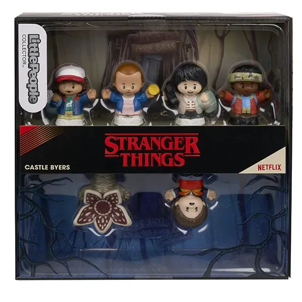 Inspired by the smash Netflix series Stranger Things, this special edition Little People Collector Castle Byers set features 6 iconic characters reimagined in signature Little People style. Gather the group from Hawkins and prepare for the Upside Down with Eleven, Mike Wheeler, Dustin Henderson, Lucas Sinclair, Will Byers and of course, the Demogorgon. Arriving in a decorative window box package, this Little People Collector figure set is the perfect gift for fans and collectors!
