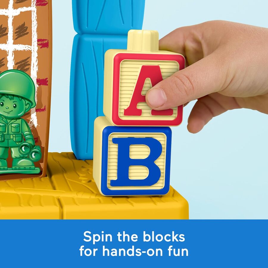 Kids can imagine exciting adventures inspired by Disney and Pixar's Toy Story films with this Little People Andy's Room playset from Fisher-Price! Styled like the iconic playroom from the films, this action-packed set features cool launching action and hands-on activities for toddlers to explore plus familiar characters and details young fans will remember, including Slinky Dog, the army soldier figures and alphabet stacking blocks.