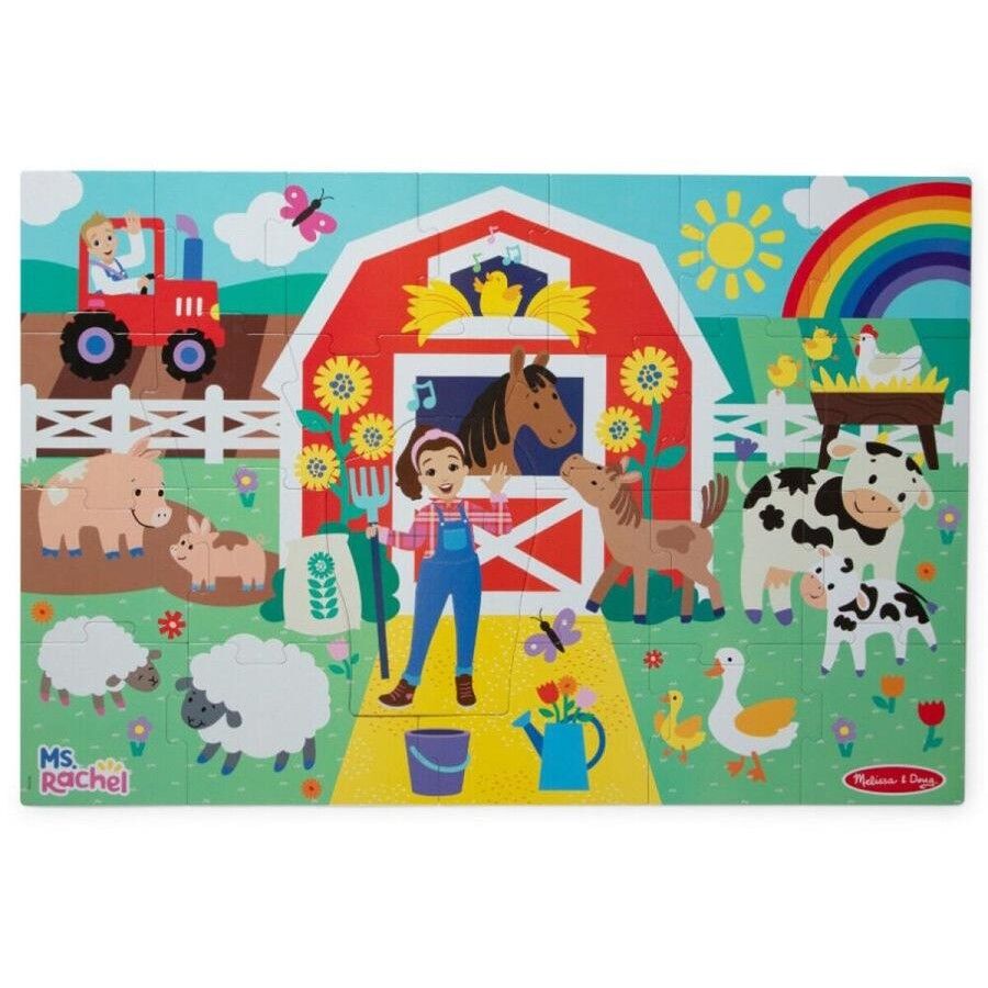Discover animals and their babies and life on the farm with favorite educator Ms. Rachel! The 24-piece Melissa & Doug Ms. Rachel Farm Floor Puzzle features jumbo-sized sturdy cardboard pieces that are easy for little hands to grasp and piece together. There's even a special Ms. Rachel piece to discover! The completed puzzle measures approximately two feet by three feet. A bonus learning card includes play ideas and skill tips for caregivers. All pieces store in a handy box. Encourage language, memory, spatial awareness, problem-solving skills, and more with this engaging Ms. Rachel puzzle and Melissa & Doug toys.These Melissa and Doug toys are toddler learning toys, designed by Ms. Rachel and developmental experts, to support all children, through their ages and stages, from 2-5+ years. Ms. Rachel toys are ideal newborn toys, toddler toys, preschool toys, and wooden toys. From baby shower gifts to baby essentials, these products help babies and families learn, bond, and thrive. Ms. Rachel is a real teacher and passionate educator, with two master's degrees in education, who creates research-based videos and products to support learning for littles.