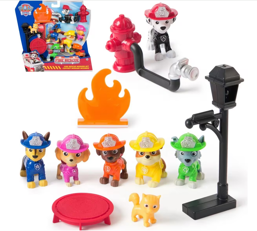 - Heroic adventures await: Dive into action with the PAW Patrol Fire Rescue Mission Set! This set includes 6 PAW Patrol pups and a kitten figure, all ready to save the day in exciting rescue missions