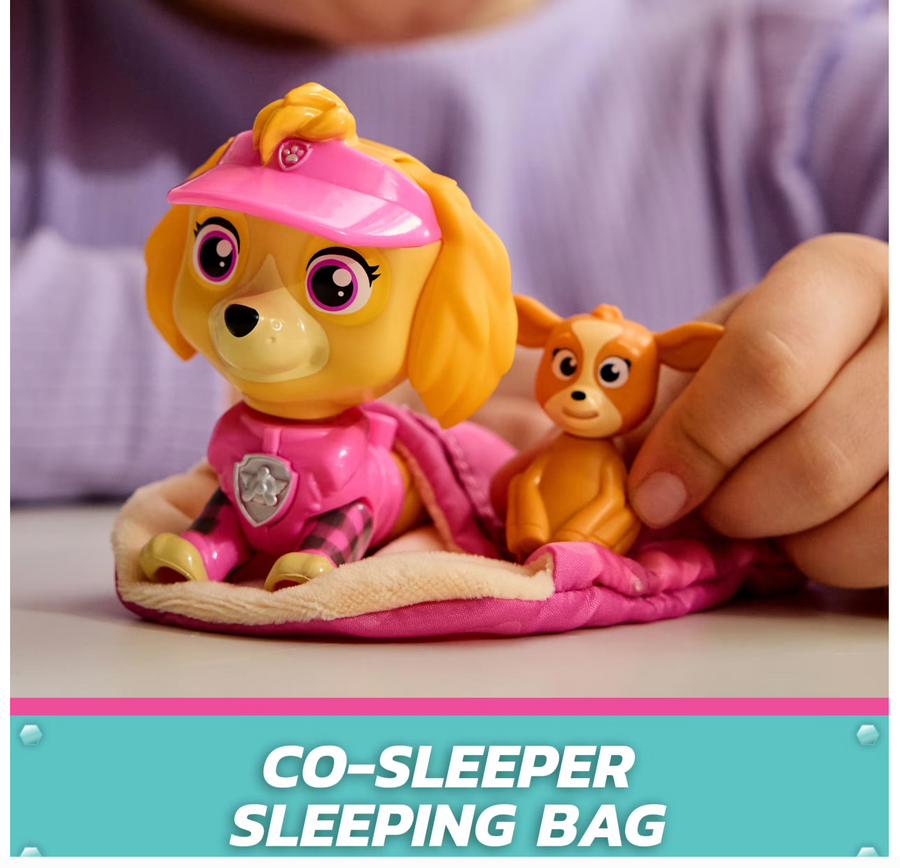 - Includes 1 x pup figure, 1 x sleeping bag and 1 x animal figure