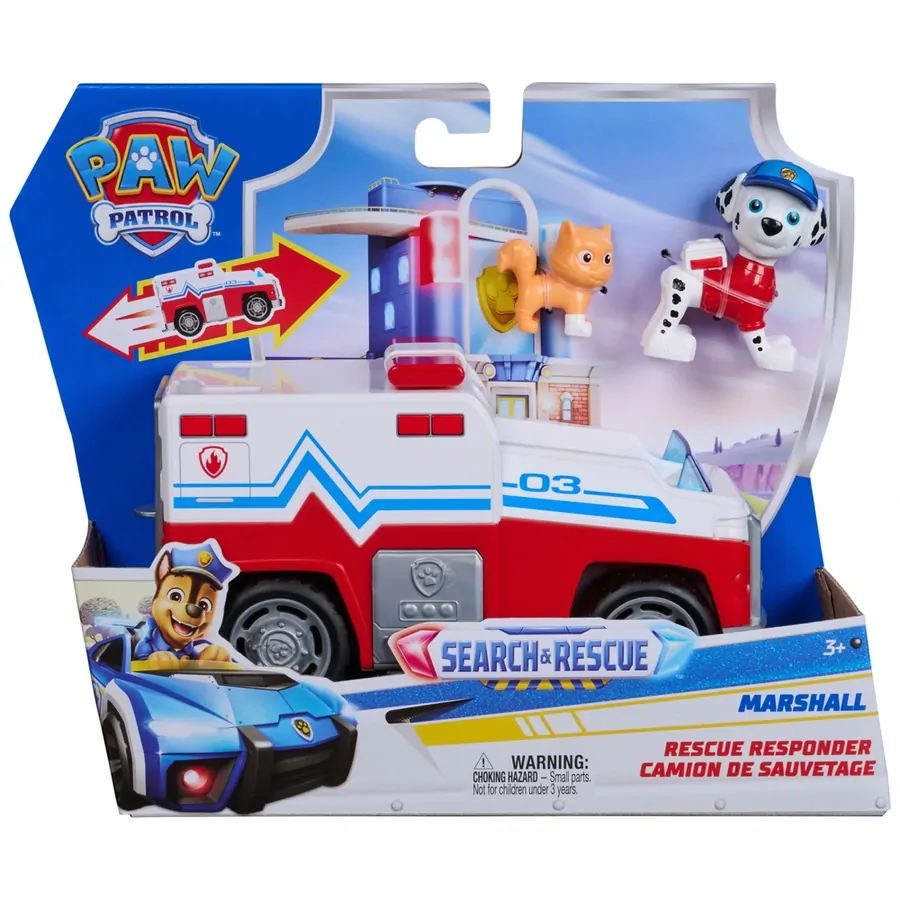 Bring home the exciting world of PAW Patrol with the Search & Rescue: Marshall Rescue Responder. This action-packed set includes a car truck toy with real working wheels, and 2 figures including Marshall, standing over 5cm tall in his search and rescue uniform, ready to save the day.