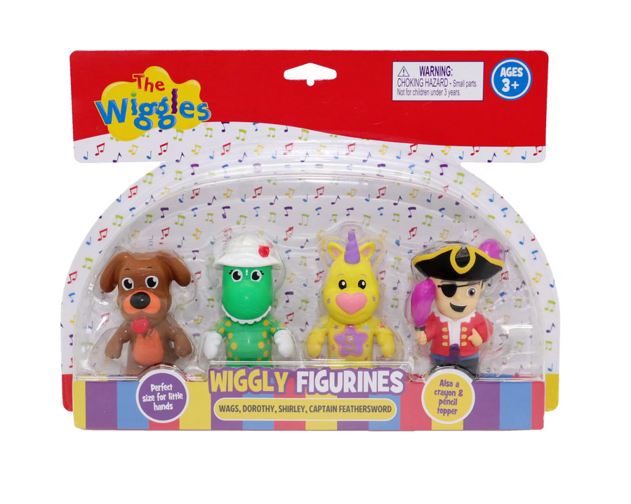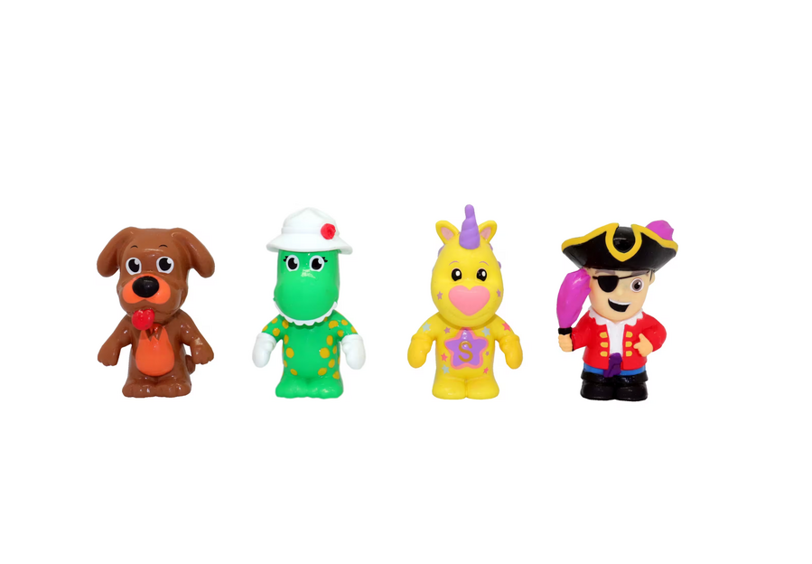 Get ready for wiggly fun with this adorable 4-pack featuring Wags the Dog, Dorothy the Dinosaur, Shirley Shawn the Unicorn and Captain Feathersword!