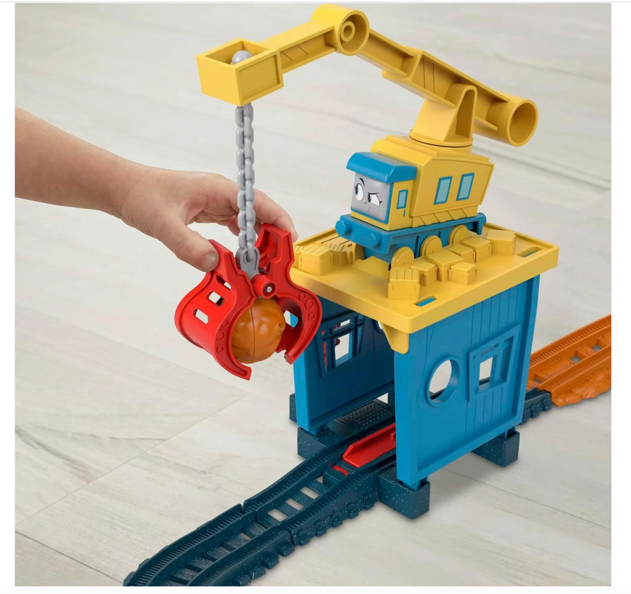 - Includes 1 Thomas motorized engine, 1 push-along Brake Car Bruno™ vehicle, 1 Carly The Crane™ toy, plus 10 play pieces