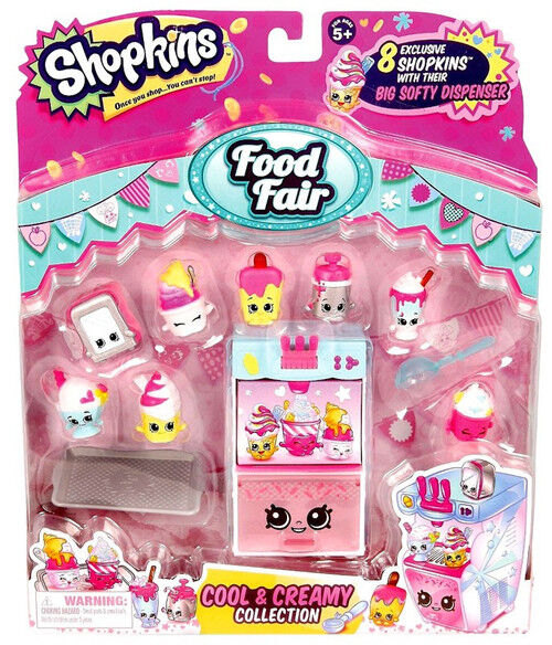 - Includes: 8x exclusive shopkins, 1x big softy dispenser, 1x tray and 1x ice cream scoop