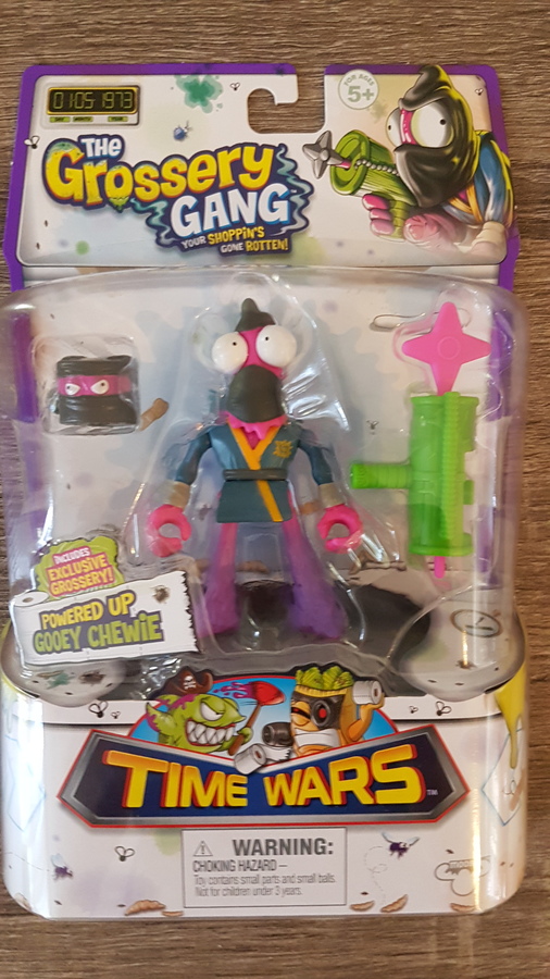 The Grossery Gang are back and ready for the Grossest battle of all time! After accidently opening up a time portal through a stinky toilet, the Grossery Gang are battling for their slimy survival. Gather Grosseries from different time periods and help them defeat The Rotbots from the future! The Grossery Gang Time Wars Regular Pack comes with 3 Grosseries on display with one hidden surprise Grossery