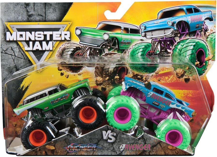Get ready for epic showdowns with the official Monster Jam 1:64 scale die-cast trucks 2-Packs! Every 2-Pack features matchups of the most popular and sought-after Monster Jam monster trucks!